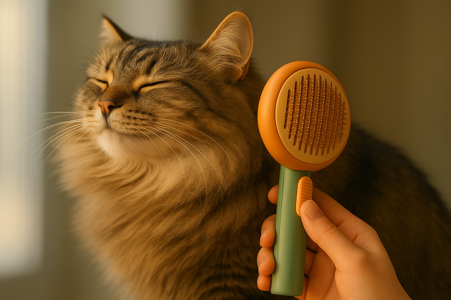 Vår smarta själv-rengörande borste tar bort lös päls skonsamt och effektivt.